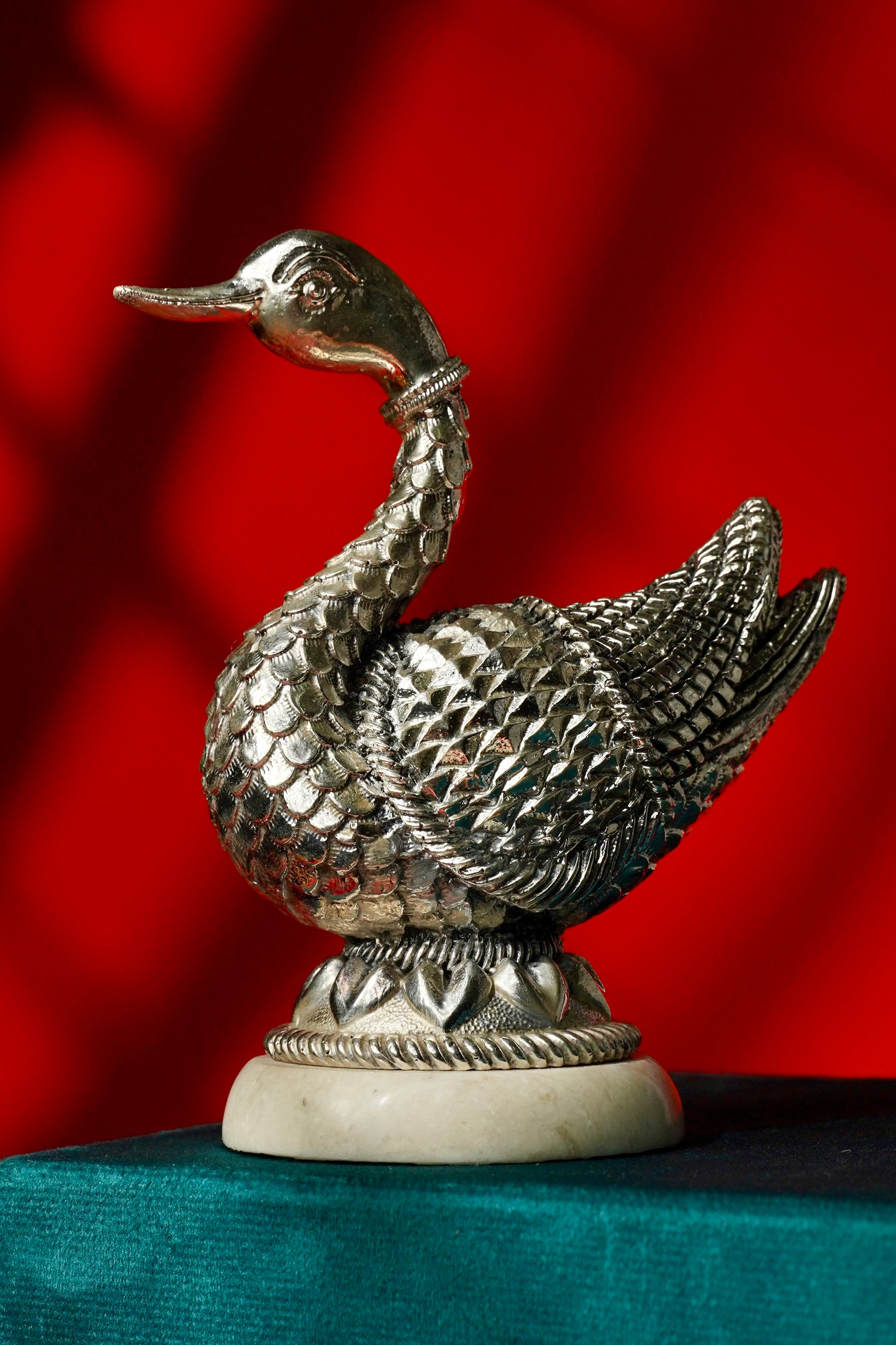 The Raj Hamsa (Royal Swan) embodies grace, purity, and spiritual growth. As the sacred vehicle of Goddess Saraswati, it glides serenely through life's challenges, reminding us to remain unaffected by external chaos and focus on higher wisdom and enlightenment. This exquisite sculpture draws from the element of air, promoting emotional balance, clarity, and spiritual elevation.